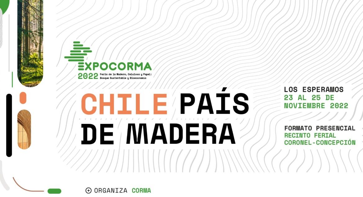 El próximo 23, 24 y 25 de noviembre se realizará la Expocorma 2022, la principal Feria Internacional de la Industria Forestal, de la Celulosa y el Papel (www.expocorma.cl).