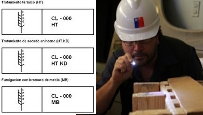 Entre los embalajes de madera que deben ser certificados (sometidos a tratamiento fitosanitario y timbrado con la marca internacional) se encuentran los pallets, bins, parrillas, marcos, jaulas, tarimas, cajas, cajones, jabas, tote bins, carretes, madera de estiba, otros.